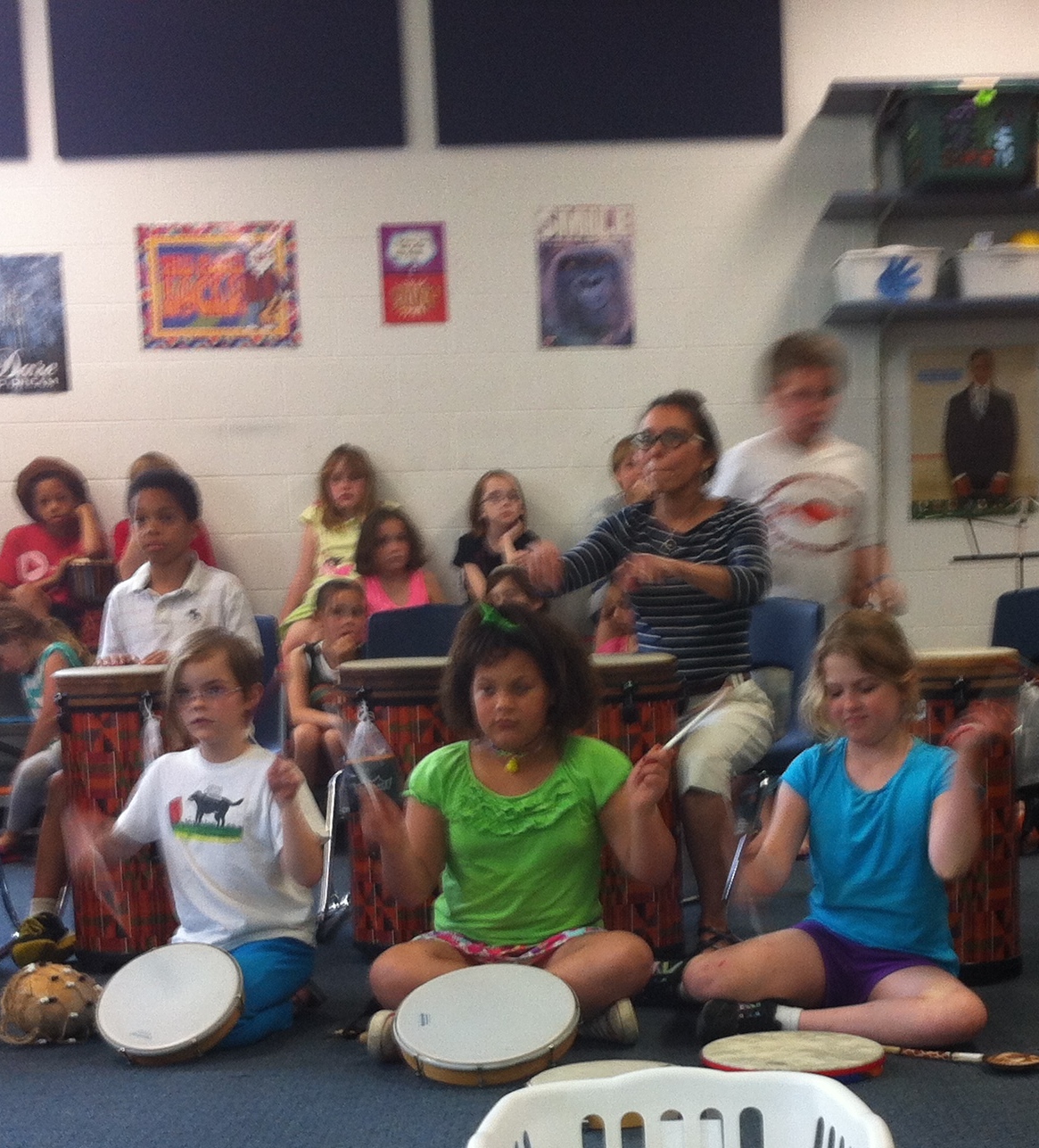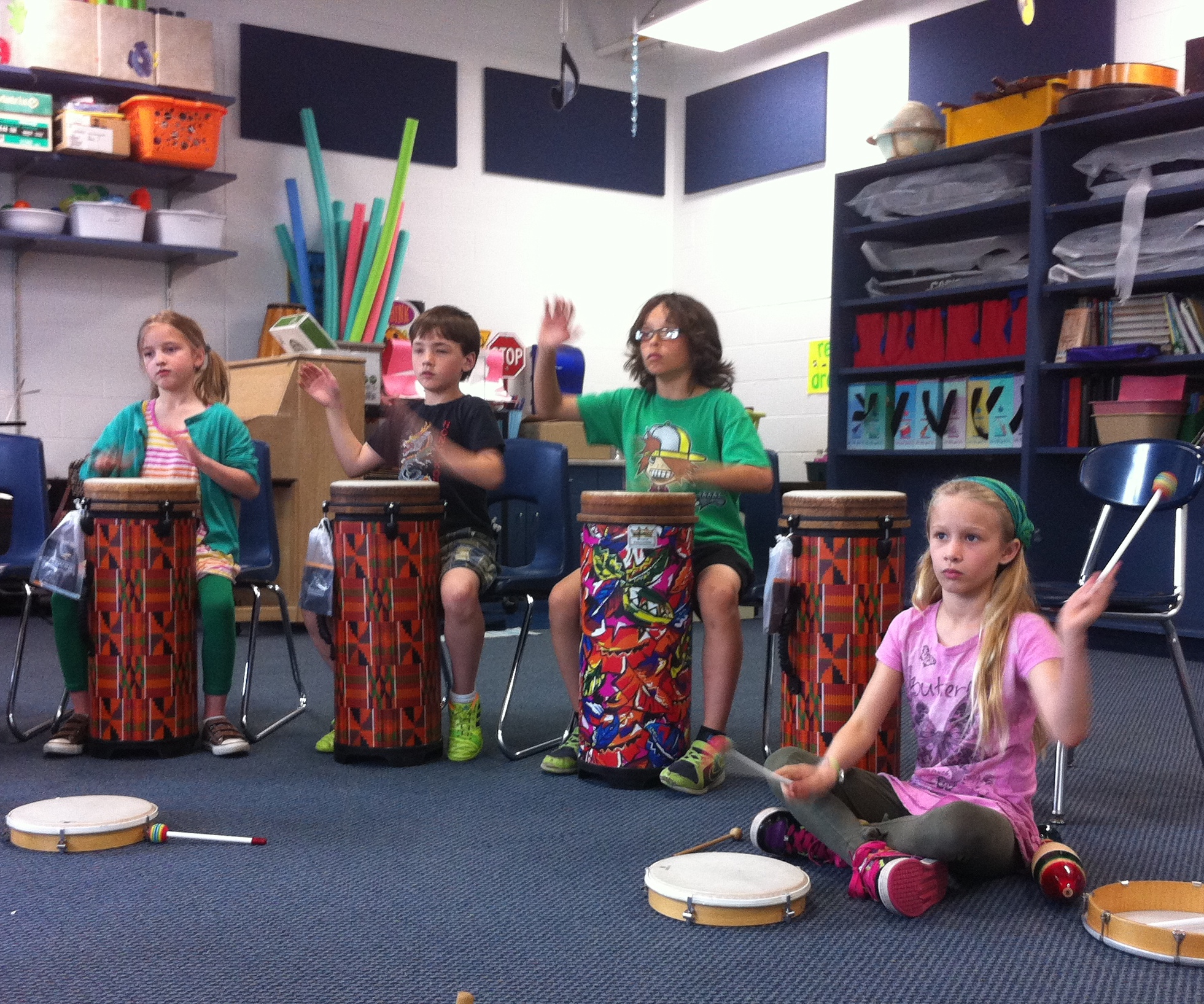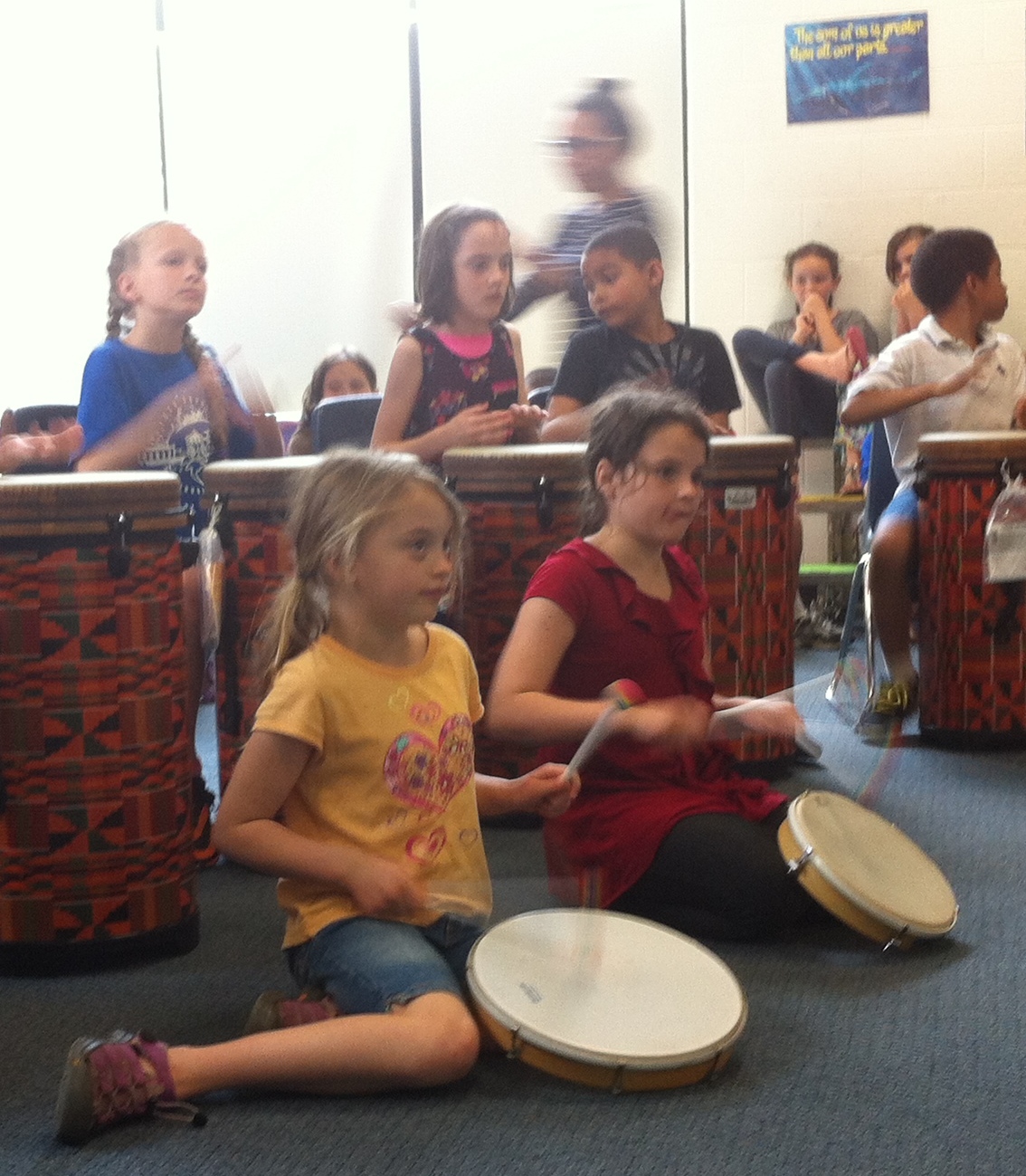 Today was the last rehearsal for the third grade D.R.U.M. Code ensemble and students are eager for their performance on Friday. Guest Musician Darren Gilley led the students through a variety of rhythms, many that included call and response. The robust sound of the students’ drumming filled the music room and looks of concentration as well as a few smiles could be found on faces throughout the room. In an interview with a few more third grade students today, I heard about the unity and togetherness that the D.R.U.M Code encourages as well as the importance of respect. Students shared their favorite parts of the experience drumming. Take a listen in the videos below. Good luck third graders!