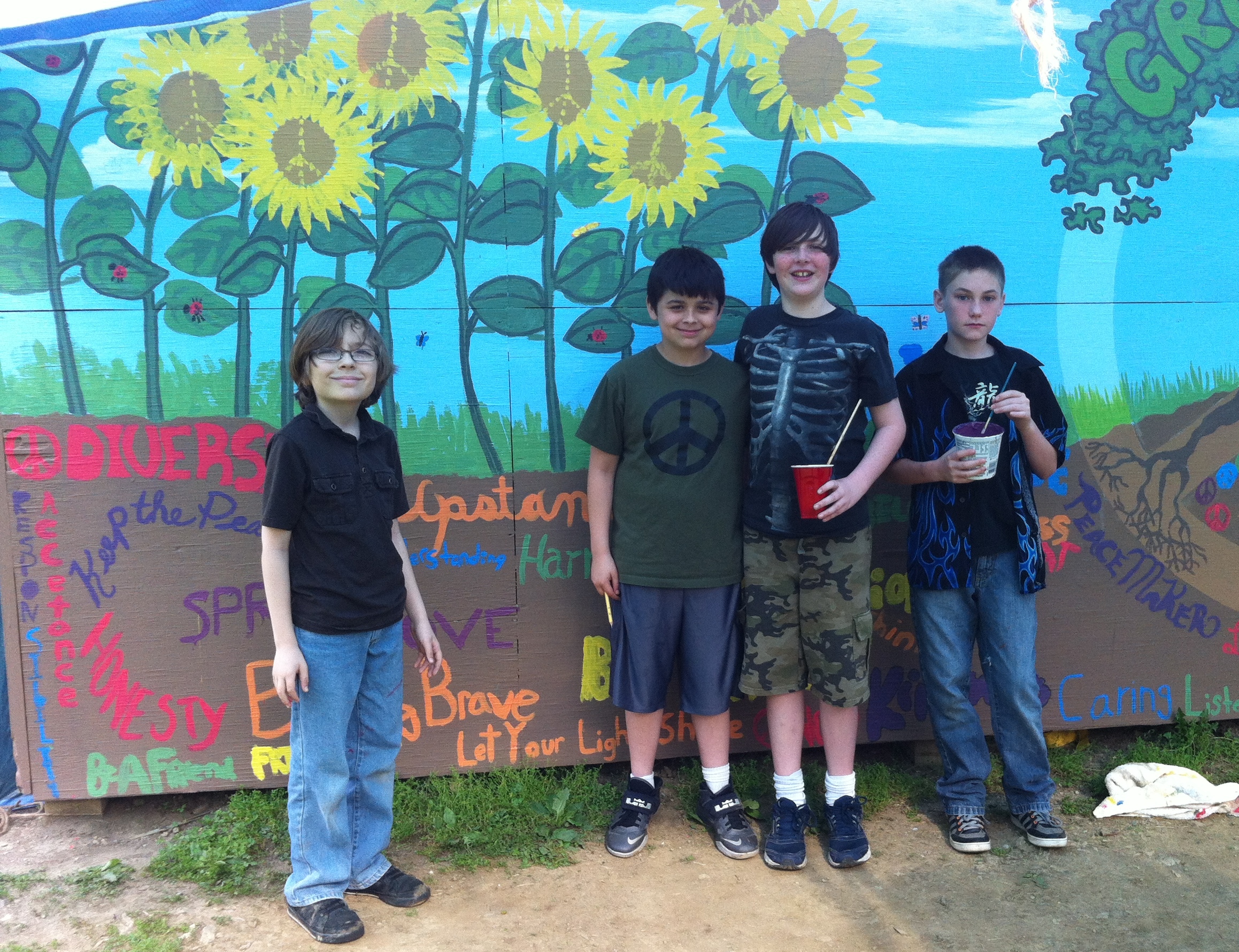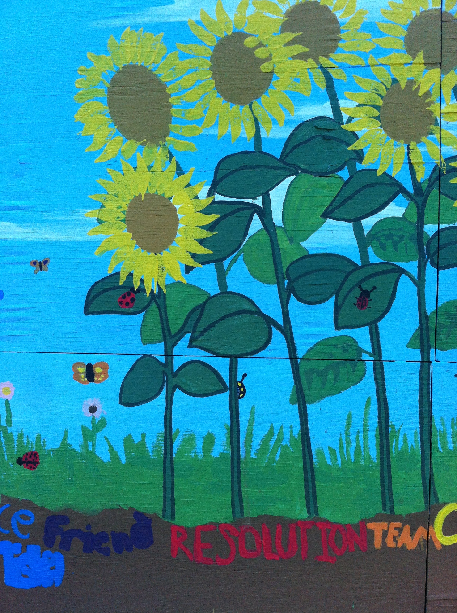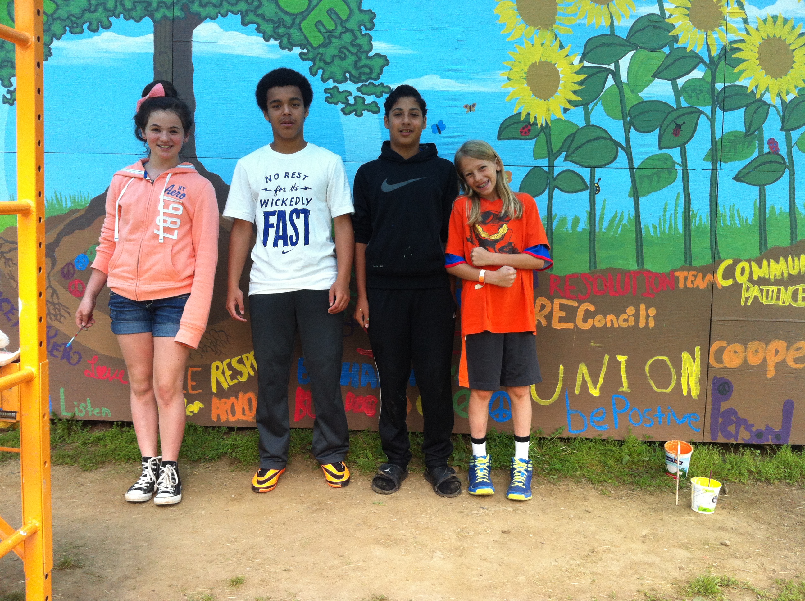 The Grow Peace Mural continues to… grow with words of peace! Check out the sixth graders’ progress on the mural, facilitated by Visiting Artist Tricia Tallman, at an unveiling this Friday evening during Exhibition Night, 6:30-8:00pm.