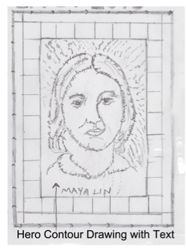 1. Artist demonstrates adding quotations about or by hero/peacemakers to the contour drawing on canvas. Quotes will be written in pencil first, then black sharpie.